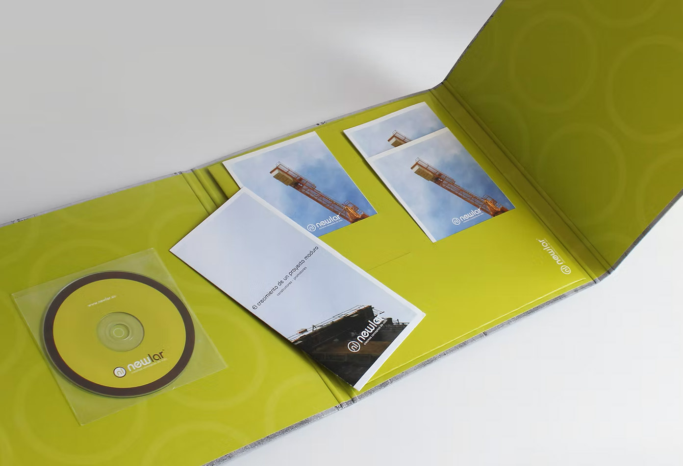 Newlar, especialista en materiales de construcción, sanitarios y grifería, se encontraba en una fase de crecimiento estratégico con la apertura de nuevas divisiones. El desafío era diseñar una herramienta de comunicación física que permitiera presentar estas nuevas áreas de negocio de forma organizada y profesional, logrando un impacto visual moderno que los diferenciara de la estética convencional y más rígida de su competencia.