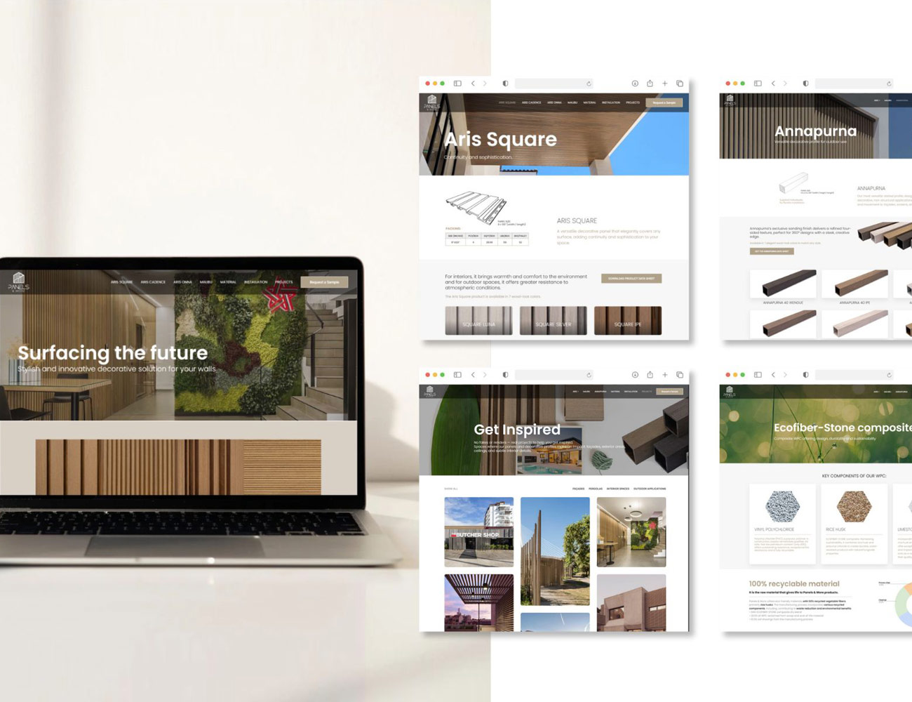 Identidad visual y ecosistema digital para una marca de paneles de revestimiento decorativo premium.
