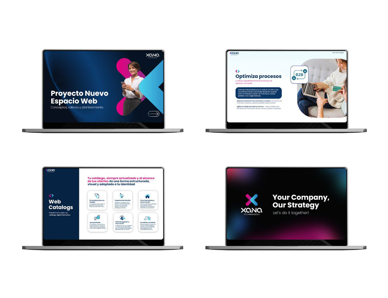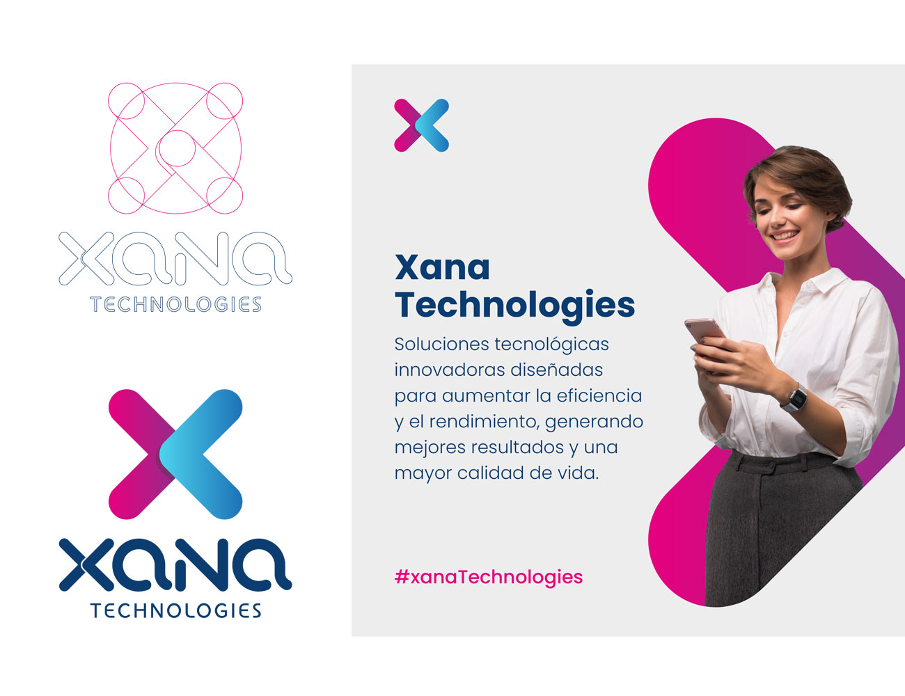 Xana Technologies se define como un motor de aceleración digital, ayudando a potenciar negocios a través de la eficiencia y el rendimiento tecnológico. El desafío era rediseñar su identidad para que proyectara esa agilidad y capacidad de transformación, creando una marca con un estilo fresco y actual que conectara con empresas que buscan dar un salto cualitativo en su presencia digital.